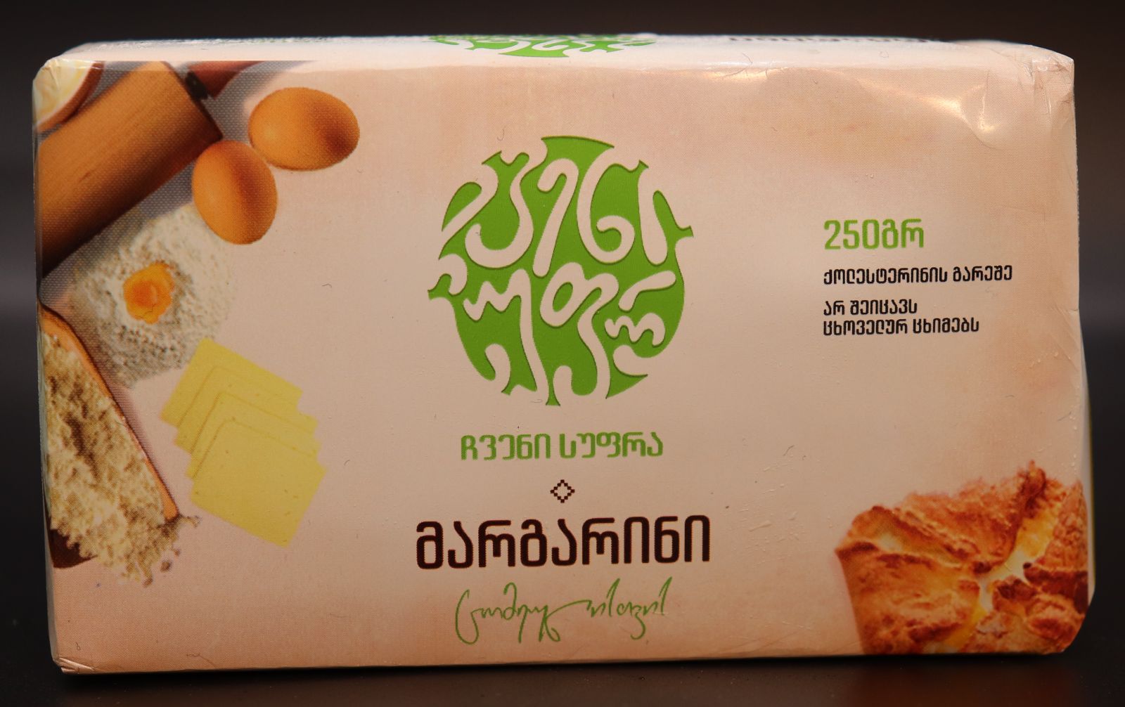 - საქართველოს ბაზარზე წარმოდგენილი მარგარინების სახეობების რაოდენობა შეზღუდულია. ჩვენ სულ 17 დასახელების ნიმუში მოვიძიეთ და შევამოწმეთ, რომლებიც 10 კომპანიის წარმოებული იყო, ხოლო 3 დასახელებაზე მხოლოდ იმპორტიორი იყო მითითებული და არა მწარმოებელი. ანუ, მარგარინების სავაჭრო ქსელში გავრცელებულ დასახელებებთან მიმართებაში თუ ვიანგარიშებთ, გამოვლენილი დარღვევის მაჩვენებელი 6%-მდე გამოდის.