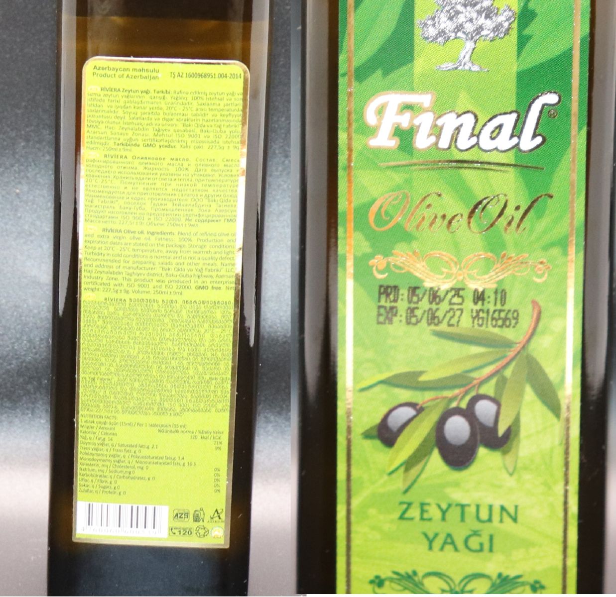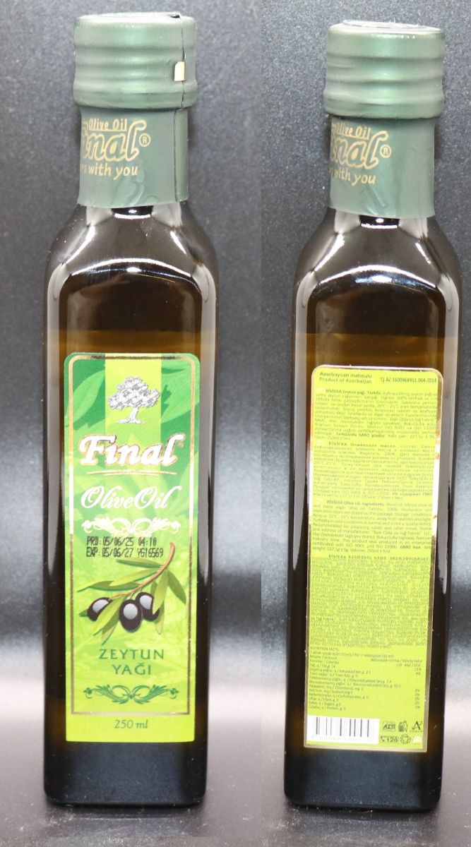 ევროკავშირში მოქმედი ნორმის მიხედვით, გამოვლინდა დარღვევა ზეითუნის ზეთში „ფინალი“, დამზადების/ვარგისიანობის თარიღი/პარტიის ნომერი: 05.06.2025 – 05.06.2027 / YG16569.