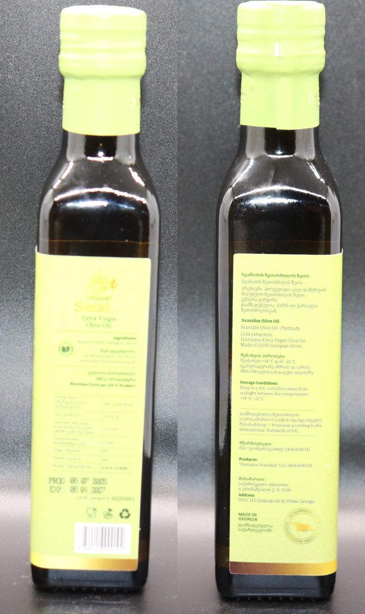 პროდუქტის დასახელება: ზეითუნის ზეთი "სვანიძე"